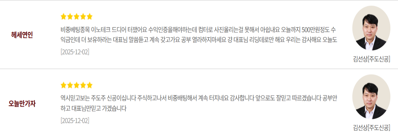 김선상대표 가족분들은 내년까지 수십억을 벌것으로 제가 하라는대로만