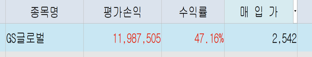 비중 늘려서 매집한 GS글로벌이 50% 급등하면서 계좌를